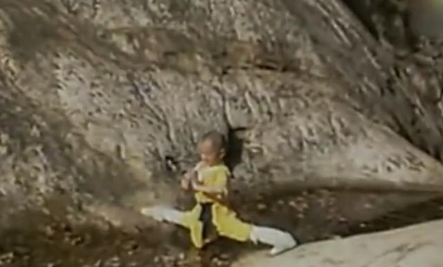 2周歲的年紀,大部分小朋友才剛剛經歷完斷奶。可釋小龍已經在父親的帶領下,開始習武訓練體能。