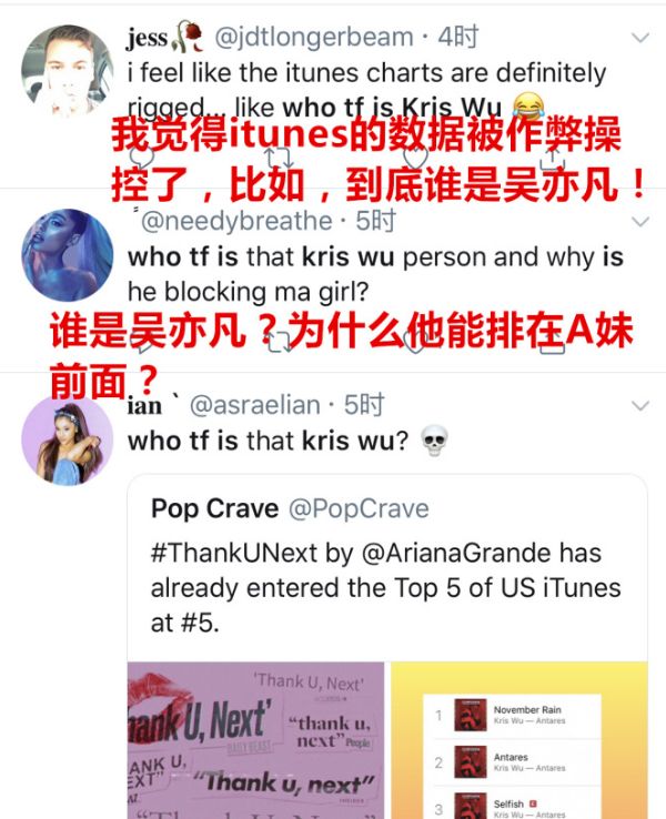 當吳亦凡登上itunes美區榜單時,網友們是這樣說的: