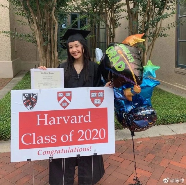 有網友科普說,在哈佛,叁種榮譽學位當中,Summa Cum Laude 最優等、Magna Cum Laude 極優等、Cum Laude 優等。能拿到這叁種榮譽的學生,在哈佛本科生學年排名起碼要達到前5%,陳沖的女兒能拿到Summa Cum Laude,這已經不是壹般意義上的優秀了,是優秀中的優秀。
