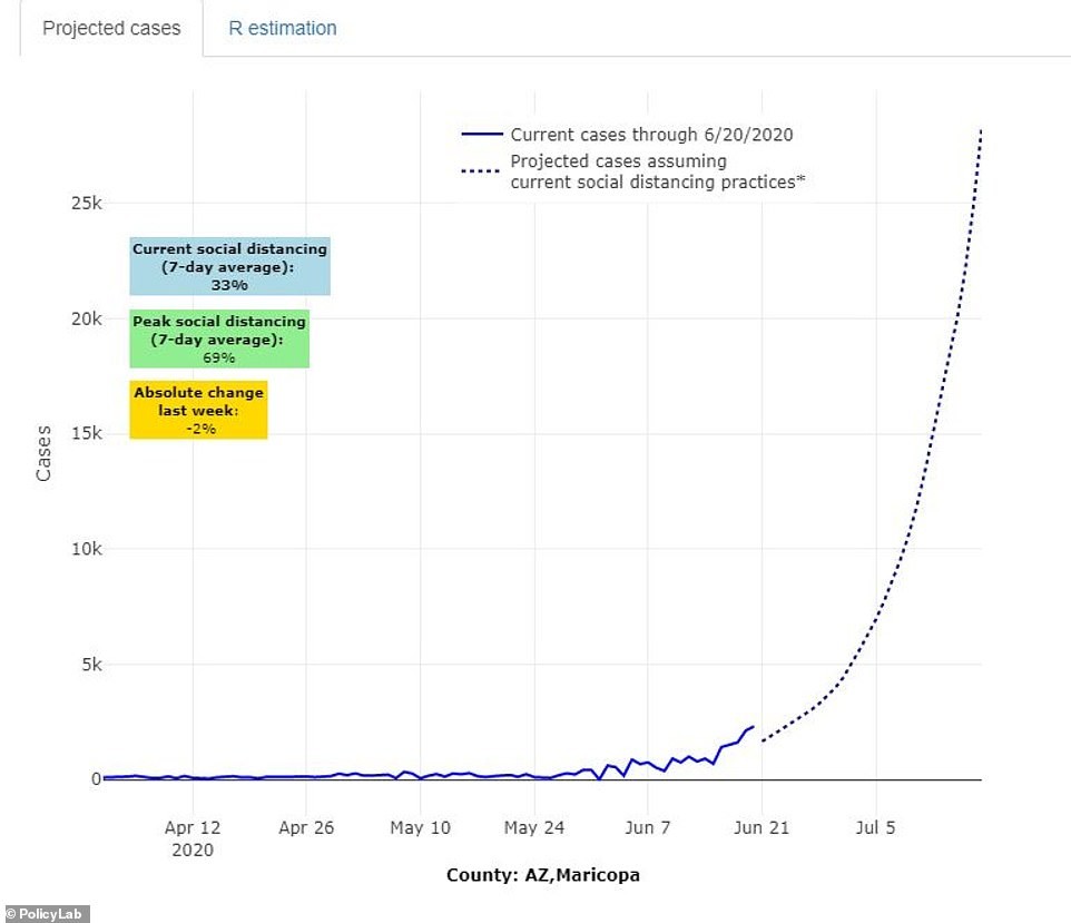 数据模型显示到7月18日,仅凤凰城每天就可以看到28,000例新增感染。