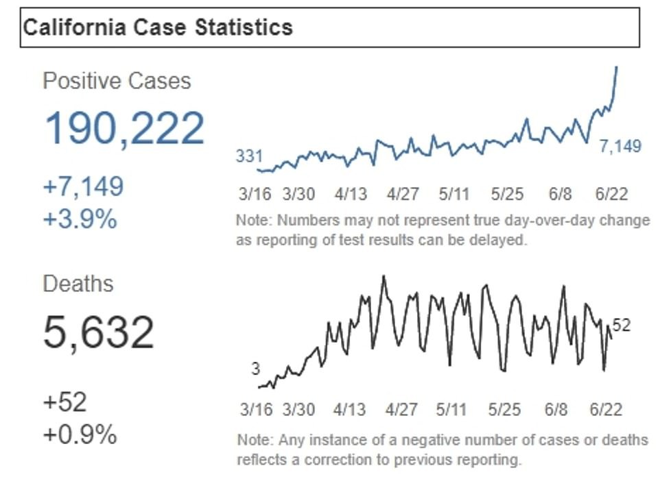 CNN6月24日报道,加州新冠确诊1天内增加7149人,创下历史最高单日确诊记录!