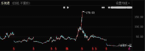 業務的成功讓樂視網股價壹路上漲,2015年5月12日達到歷史最高點179.03元。