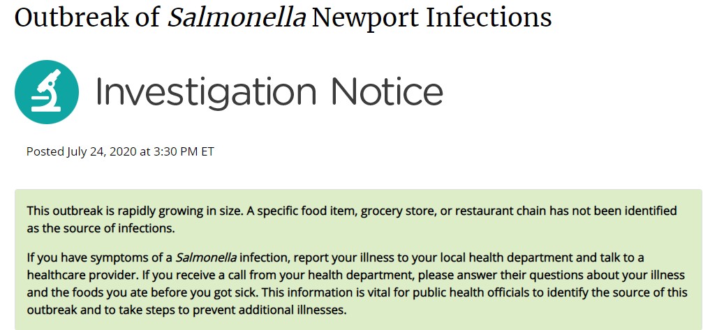 美國疾病預防控制中心(CDC)也稱沙門氏菌疫情正在“擴大”,自7月21日以來,又有87人報告患病。