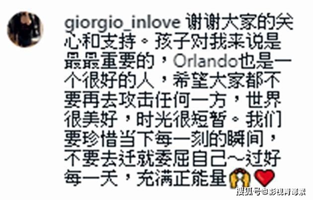 兩個人的聲明發出後,大多數網友都認為何猷啟變心了,怒斥何猷啟。而齊嬌在留言區力證何猷啟的人品好:“謝謝大家的關心和支持。孩子對我來說是最最重要的,Orlando(何猷啟)也是壹個很好的人,希望大家都不要再去攻擊任何壹方,世界很美好,時光很短暫。我們要珍惜當下每壹刻的瞬間,不要去遷就委屈自己,過好每壹天,充滿正能量。”