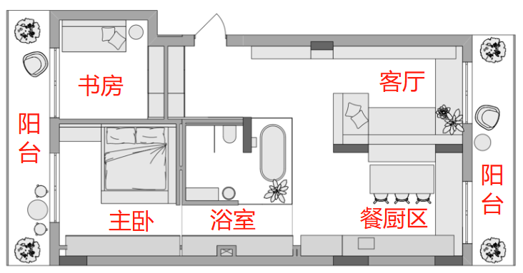這間屋子面積82㎡,是很方正的兩室兩廳戶型。