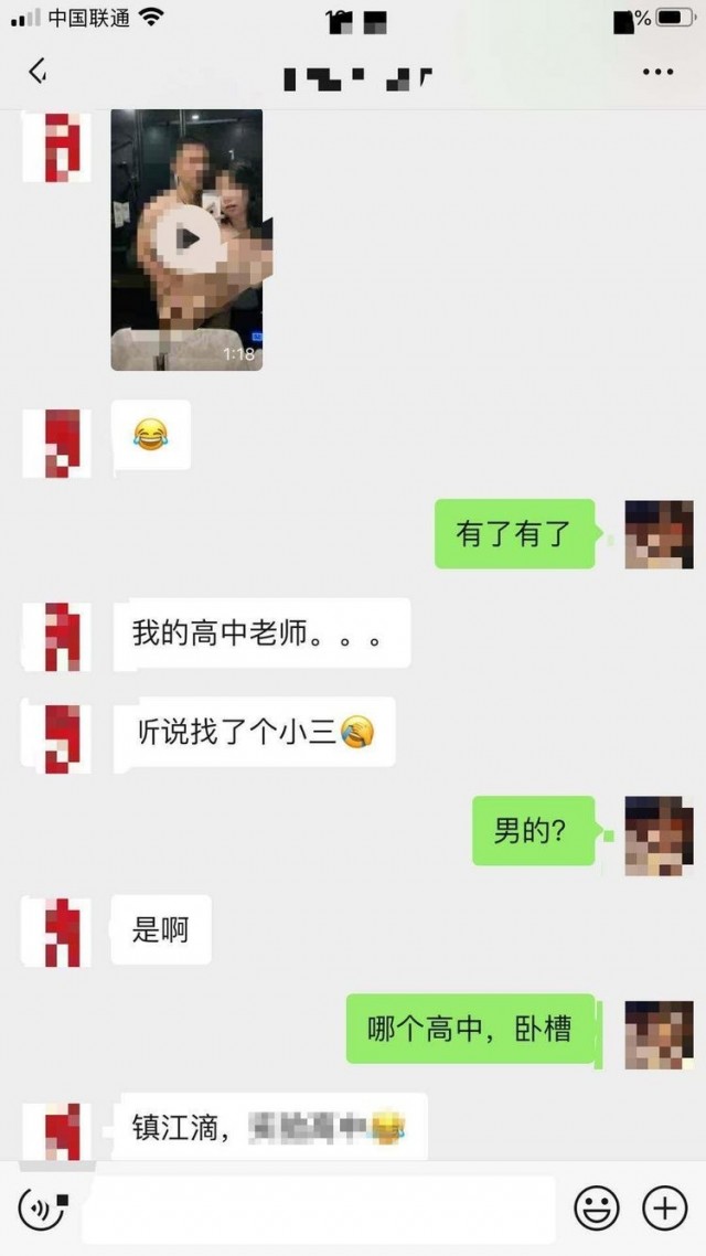 近日中國社交網站上流傳壹段不雅影片,男女主角被指稱是中國鎮江某高中男老師,與比他小20多歲的女學生,因為女學生的男友在她的手機裡發現影片,因而將影片流出。