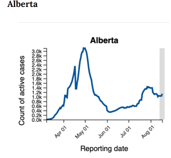 2020年8月17日,阿爾伯塔衛生局公布了最新數據,在過去的這個周末裡,阿爾伯塔新增確診數據高達359例。