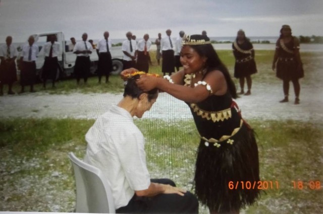 台灣前駐基裡巴斯大使何登煌20日接受自由亞洲電台專訪表示,2011年,他受邀前往基裡巴斯外島BEKIN,受到最崇高的禮遇。(何登煌提供)