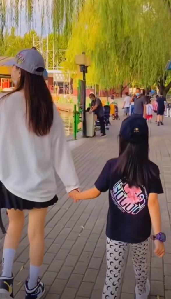 而李小璐則是穿著白色長袖與黑色短裙,打扮非常青春靚麗,就連襪子與鞋子搭配得都很有時尚感。甜馨繼承了父母的優點,不到8歲身高就已經快到媽媽肩膀了,母女贰人牽手散步的畫面很溫馨。