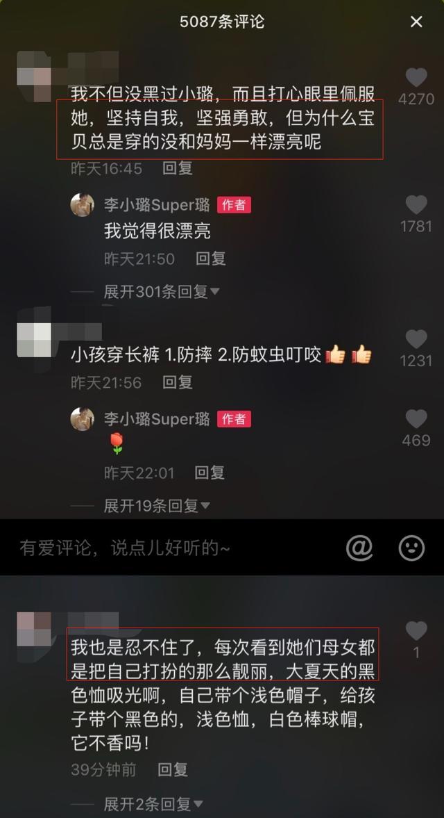 不過李小璐的這則視頻卻引起了很大的爭議,不少人批評她只顧著自己好看,卻給甜馨穿的衣服太丑,對此李小璐堅定地說:"我覺得很漂亮。"也有人覺得給孩子穿長褲是為了防摔和防蚊蟲叮咬,李小璐也表示贊同。