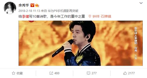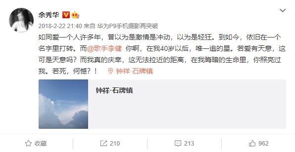 起因是她發了壹條示愛李健的微博:
