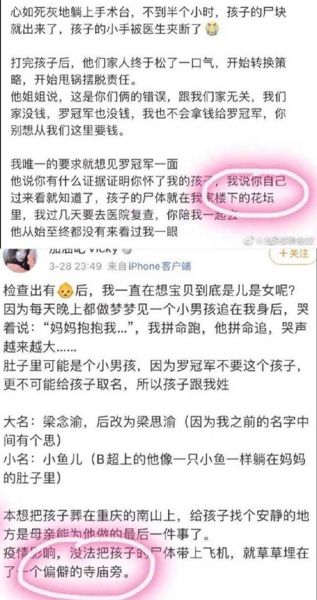 之後,梁女士還自稱為了打這場官司,雇律師花了 2000 萬,買熱搜花了幾拾萬,以及自稱懷孕八周產下的孩子葬到家樓下花壇及偏僻的寺廟旁。