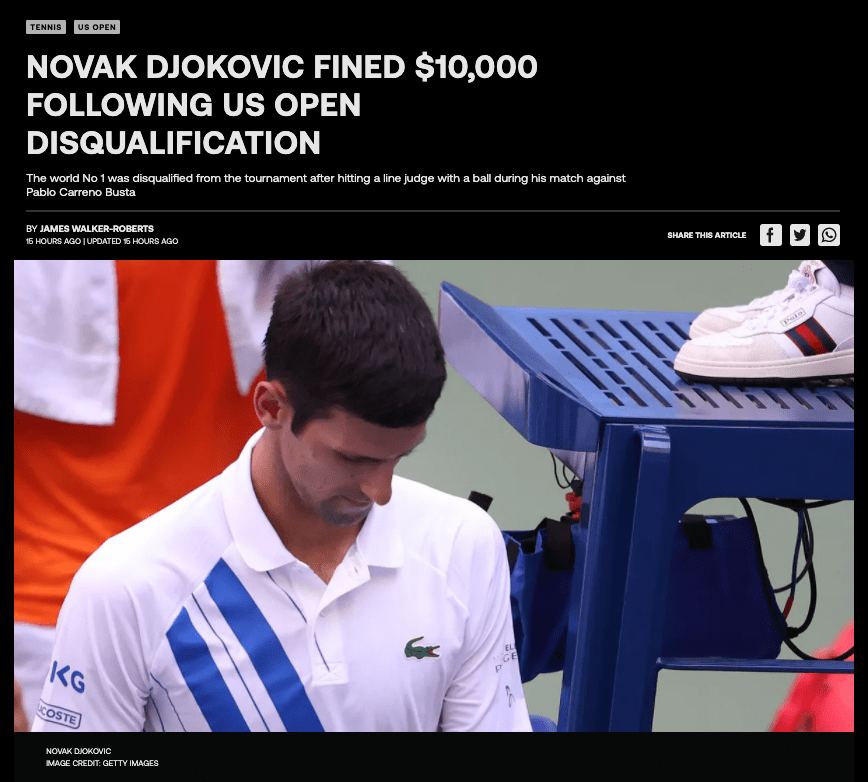 北京時間9月8日,據多家外國媒體報道,在美國網球公開賽因為擊球傷害線審而被直接取消參賽資格之後,無緣爭奪美網冠軍的德約科維奇也要為自己的行為付出經濟損失的代價。