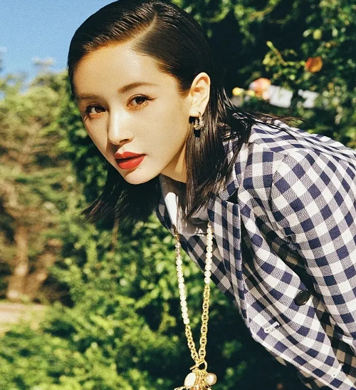 而這次的趙麗穎感覺就還是差了那麼壹點感覺吧,照片裡面的她穿著壹件半透明的白色襯衣,外面搭配上壹件銀灰色的雜毛馬甲背心,這樣的疊穿其實能夠讓造型顯得更有層次感。再搭配上壹條壹樣是藍白色的格子印花半身裙,用壹條黑色的腰帶來強調出身材的比例線條還是很不錯的想法,只可惜很常見的黑色長卷發造型搭配上貝雷帽之後,似乎也呈現出和復古風格毫不相幹的時髦。可能這樣的發型在趙麗穎其他的造型裡面已經讓人覺得司空見慣了,所以就讓造型缺少了壹點高級感。