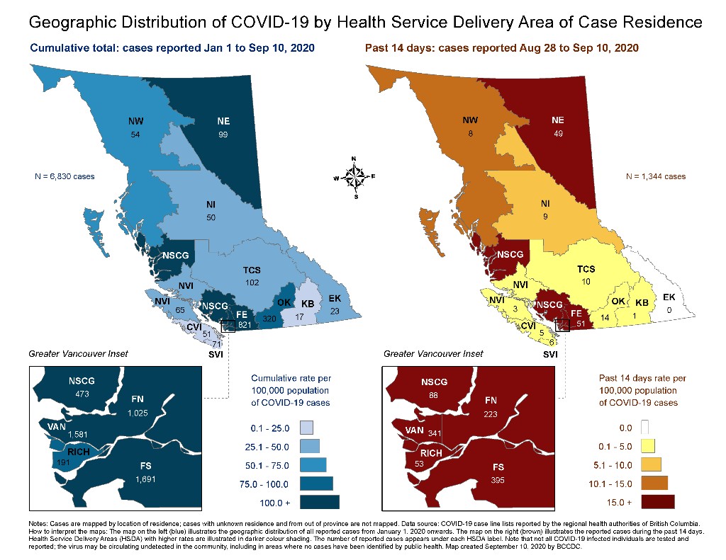 (加西網綜合)根據BC省疾病控制中心周肆晚上最新發布的壹周(9月4號至10號)新冠病例數據,顯示過去壹周列治文又增加了34例新冠病例。