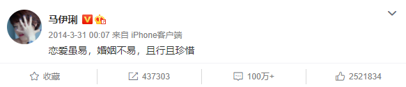馬伊琍則以包容大度的“且行且珍惜”作出回應。