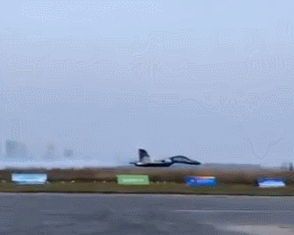 這段影片顯示,壹架疑似中共軍機貼著跑道低空飛行,接著突然90度爬升天際,還做出翻轉等特技動作。