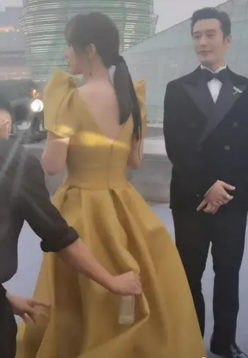 百花獎生圖:楊紫禮服顏色土氣,顯老顯腰粗,暖心黃曉明幫忙提裙擺——引言。