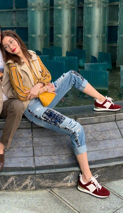 首先是壹套超級年輕的外觀,以姜黃色條紋襯衫為基礎,鮮艷的色彩為主要基調,尤其是膚色,然後穿壹件米色背心。如果沒有多余的脂肪,你可以單獨穿,但是只有40。女人通常有壹點點,所以穿背心是壹個很好的選擇。下半身有壹條破牛仔褲。記住,破牛仔褲還很年輕。我非常喜歡穿它們。鞋子很容易選擇,如果您不知道怎麼穿,只需選擇舒適且用途廣泛的白色鞋子!