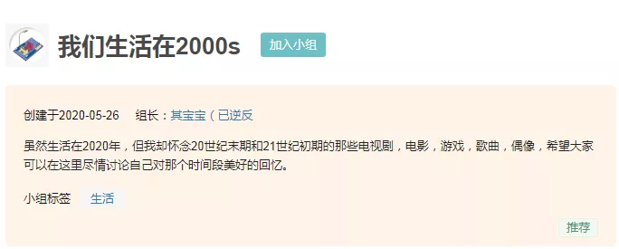 在“我們生活在2000s”小組裡,2000年被形容為“泛著金色的光芒,永遠沒有煩惱,每天就開開心心的”,“那時候奧運會開到家門口,那時候還和暗戀的男同學發短信,那時候的風都是溫柔的”。