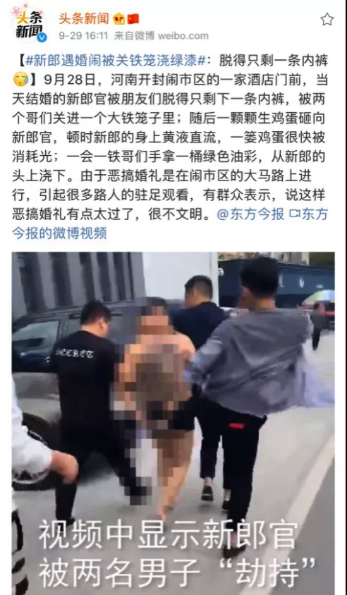 等到他們將新郎從籠子裡放出來的時候,新郎壹身狼狽,慘不忍睹。