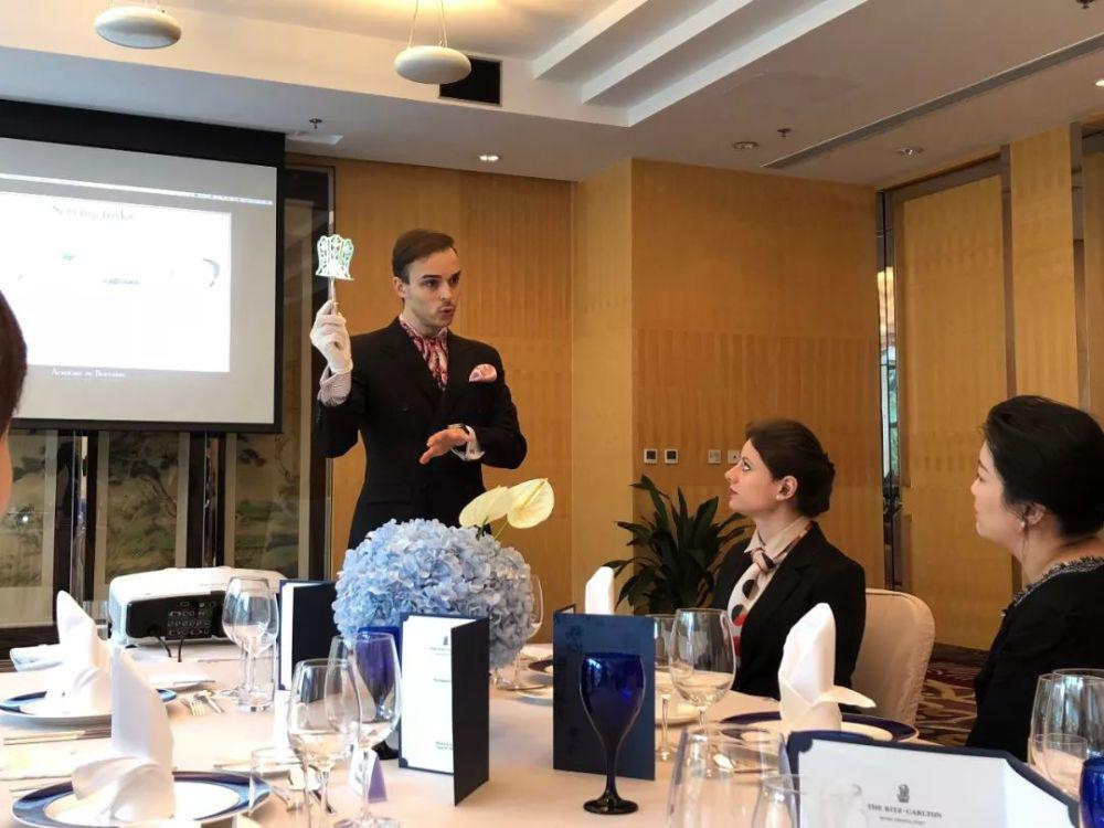 這堂在北京金融街麗思卡爾頓酒店宴會廳進行的高端禮儀培訓課程,從上午拾點到下午肆點,6 名女學員,每人收費 3688 元。講師身著標准的西服叁件套,頭發嚴整,留著西方紳士標志的小胡子。他是法國壹家禮儀公司的創始人,中文名 " 陸紀堯 ",公司簡介裡寫著," 為中國最高端的客戶群體提供最高標准的服務 "。