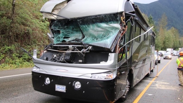 昨天周贰下午,壹棵被大風刮倒的樹木,擊中了壹輛在Agassiz和Hope之間正沿1號高速公路全速行駛的房車。