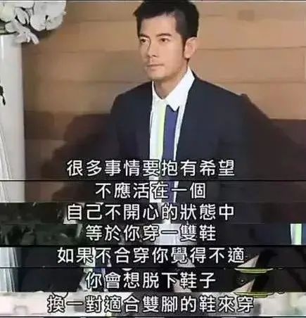 為了宣布分手,郭天王還創造了著名的鞋子理論:“穿壹雙鞋,如果你覺得不合適,你會想脫下鞋子,換壹對合適和雙腳的鞋來穿…不合適還繼續穿,只會流血,傷口亦不會愈合。”