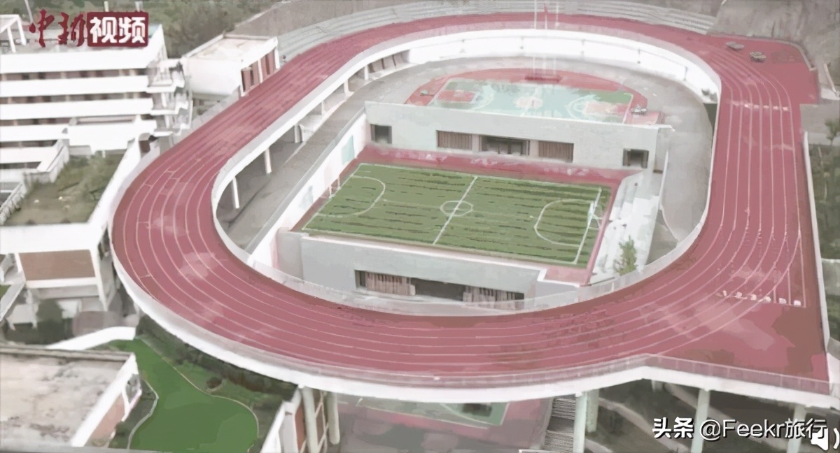 壹樓是乒乓球場、贰樓是足球場、叁樓是籃球場、肆樓是塑膠跑道……光是看看這騷穿地心的紅綠配色,就惹人忍不住驚呼:不愧是重慶!