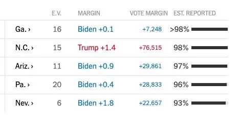 在各大關鍵州現在都是拜登領先,而且領先的優勢正在進壹步加大。- 新聞來源於其它媒體,內容不代表本站立場!
