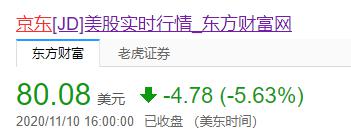 然而另壹邊的資本市場卻不為所動,反而狠狠地潑下了壹盆涼水。11 月 10 日,阿裡港股下跌 5.1%,京東更是暴跌近 9%。隨後的美股市場中,兩家的股價也均出現了較大幅度的下跌。