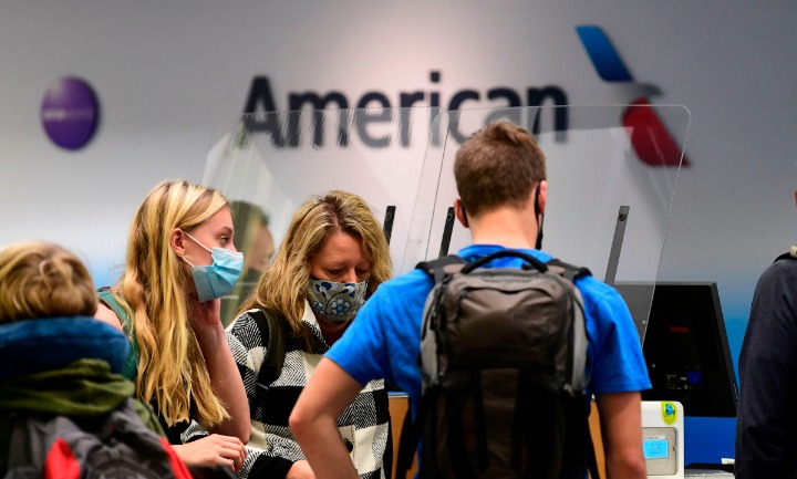 10月1日,旅客在美國洛杉磯國際機場的美國航空公司櫃台值機。美國航空公司和聯合航空公司10月1日宣布,由於未能得到聯邦政府進壹步經濟援助,總計裁員3.2萬人。新華社/法新