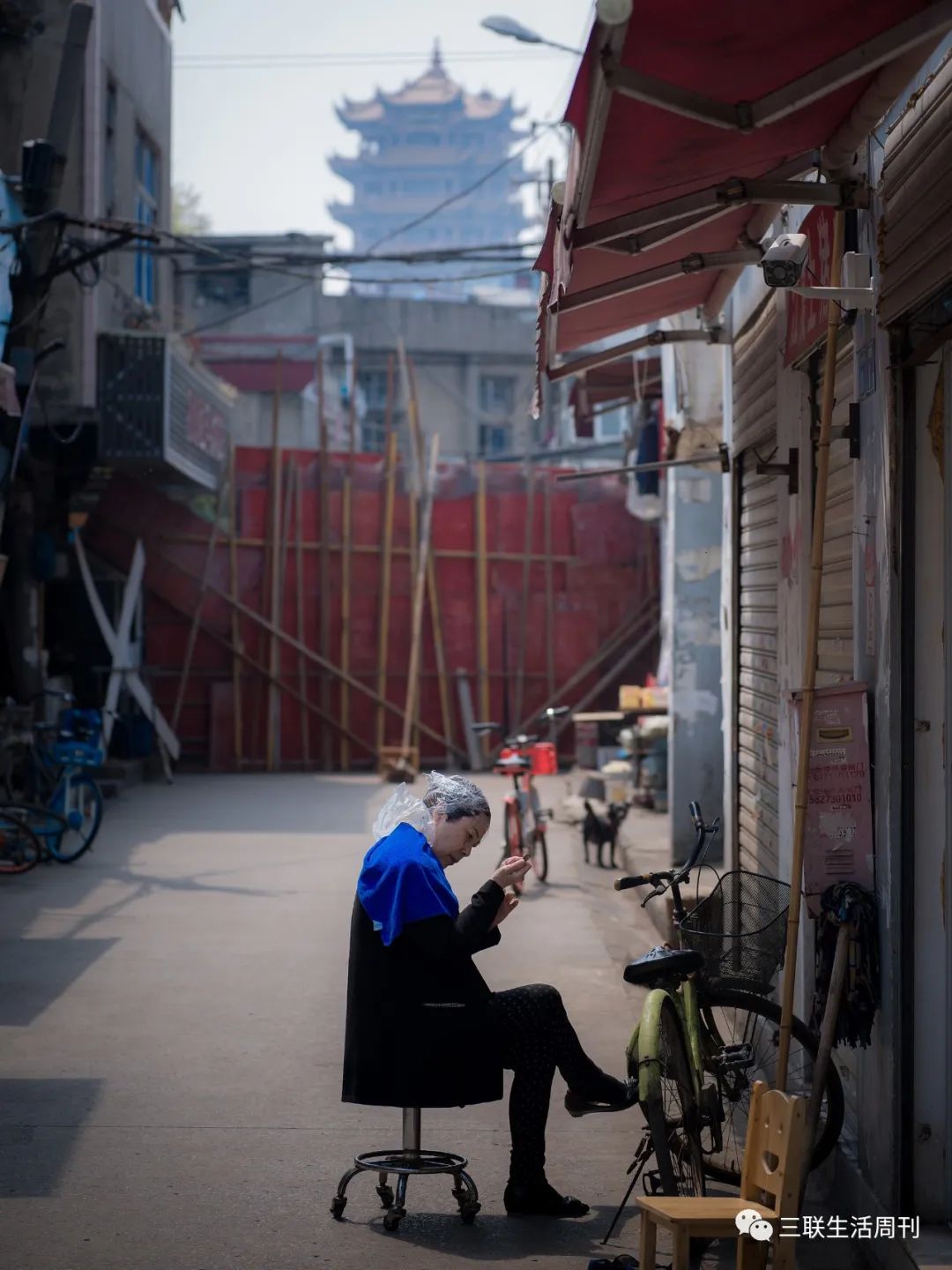 這是郭阿姨在天寧寺橋附近支理發攤的第拾個年頭。拾年前,她在不遠的地方有家屬於自己的理發店,那時候她的家伙事兒齊備,燙、染、洗、剪,就沒有她幹不了的。生意在當時也相當紅火,要結婚的年輕姑娘找她盤頭,大小伙子讓她設計個清爽幹淨的發型,過年前燙頭的顧客也都是排大隊。