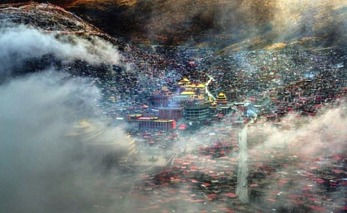 清冷的冬日裡沿著喇榮溝上行,在埡口上遠眺,那數之不盡的紅色僧舍便撞進眼中。高原冬天的陽光銳利,最是能勾勒出紅色僧舍的輪廓。