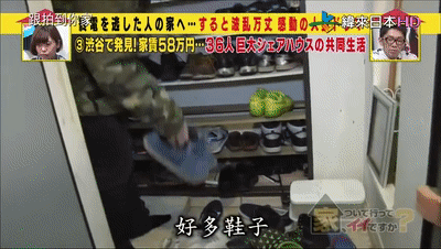 壹進門,玄關的地方有壹個巨大的鞋櫃,所有人的鞋子都放在這裡,有的還直接扔在了地上。