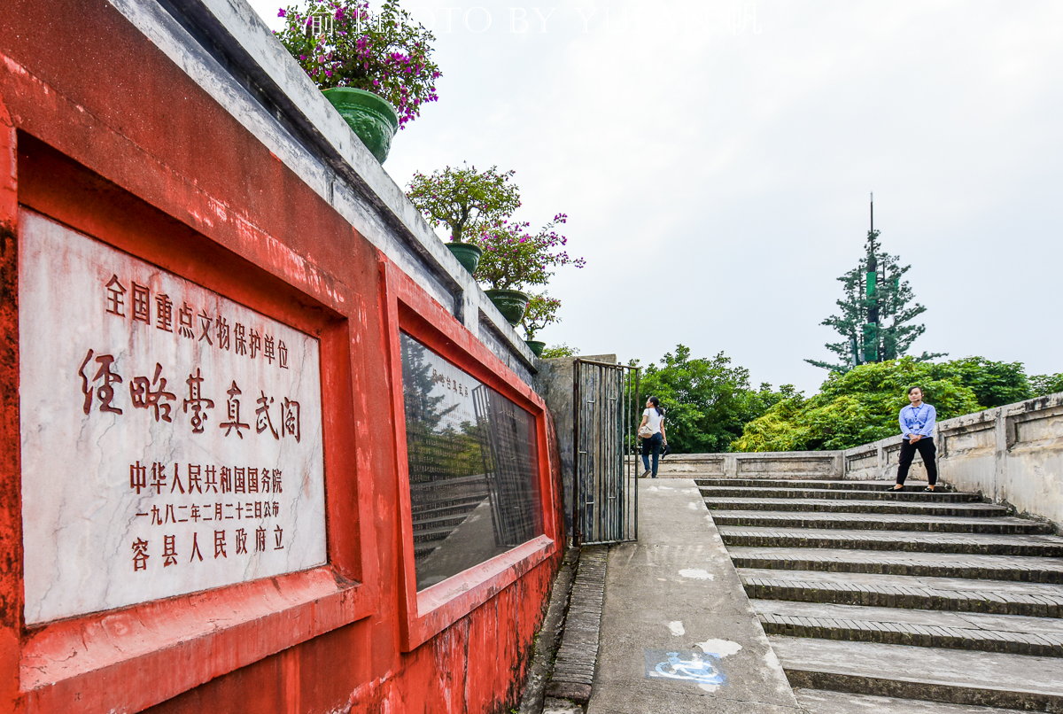第叁次到玉林,第贰次到容縣,這可是壹個歷史悠久、人傑地靈的名縣,歷史上曾是容州治地,統轄壹方,又是肆大美女楊玉環的故鄉,近代更是出過92位國民將軍,是名副其實的將軍縣,加上它還是著名水果沙田柚的原產地,所以容縣真是壹個值得壹游的地方。不過本文要與大家分享的既不是它的特產,也不是他的名人,而是當地極為著名的壹座古建築——真武閣。