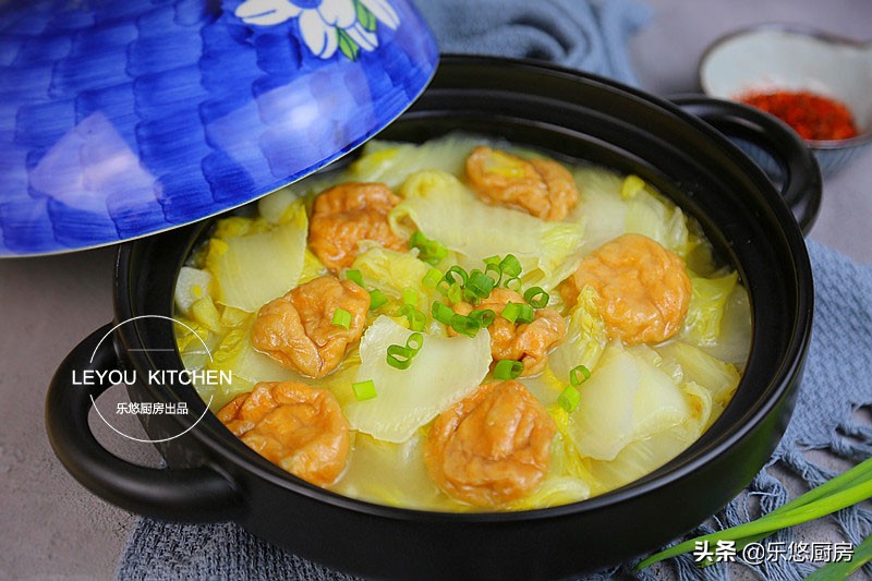 油面筋,吃火鍋時比較常見。用它做砂鍋燉菜,和白菜壹起燉,壹樣特別好吃。