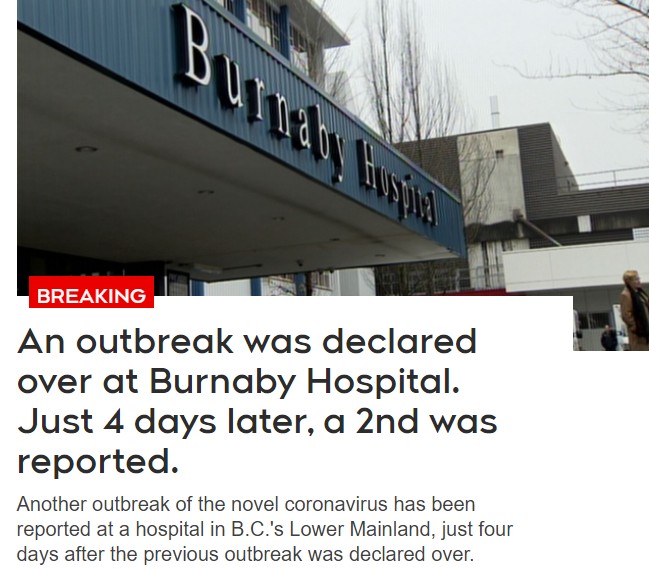 (加西網綜合)大溫地區本那比醫院爆發的疫情導致超過100多名患者和工作人員感染的疫情才剛剛宣布結束僅4天,這家醫院今天又宣布再次爆發新冠疫情。