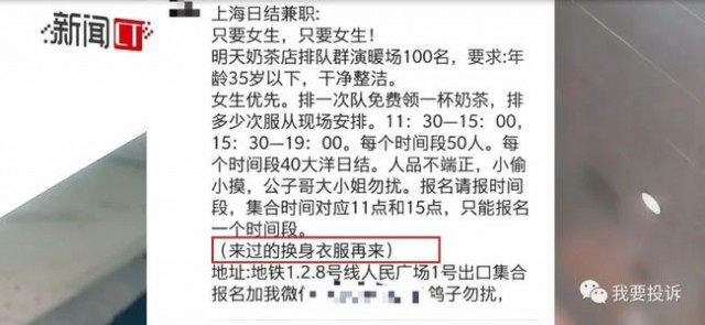 壹則名為“奶茶排隊群演暖場”的兼職招聘