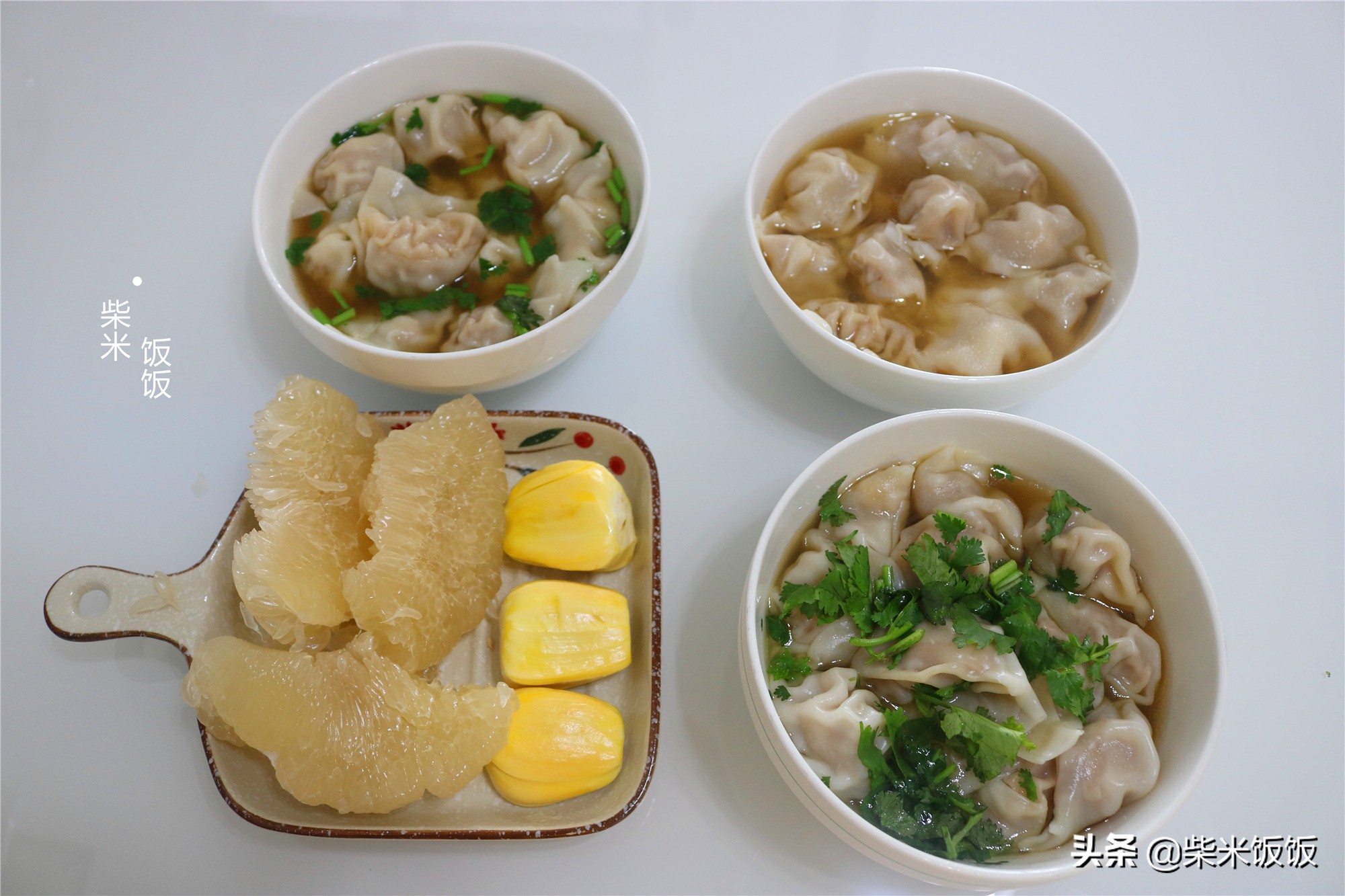 第叁天早餐:餛飩、柚子、菠蘿蜜