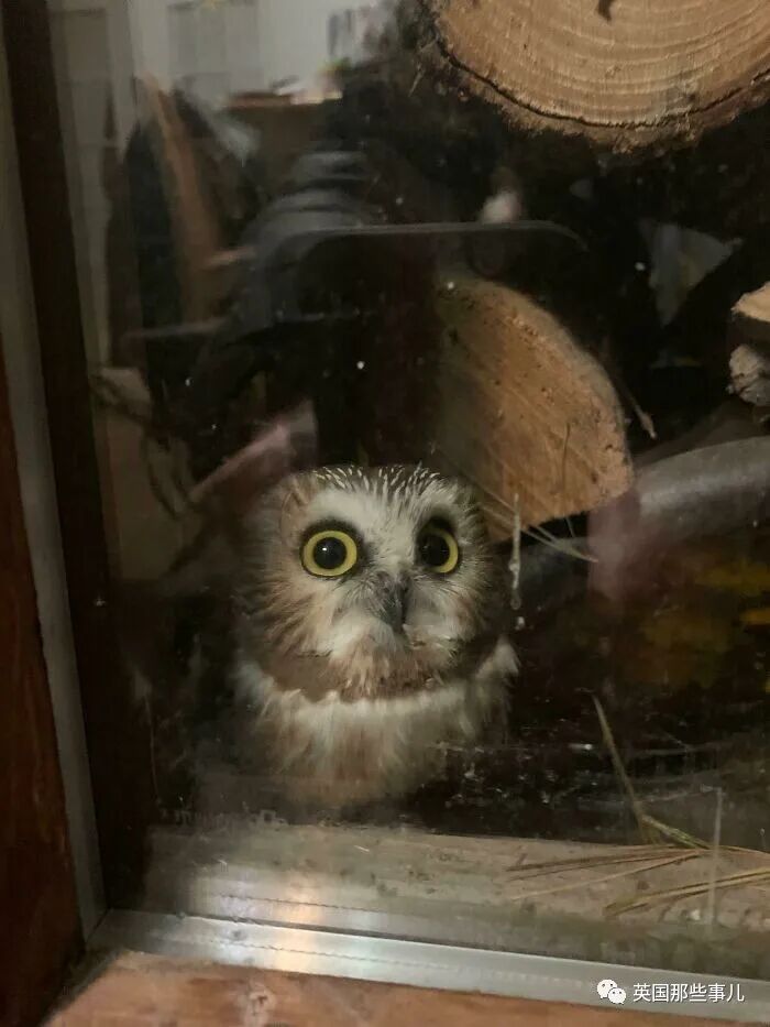 “我媽發現門廊的柴火後面竟然有壹只小貓頭鷹!”