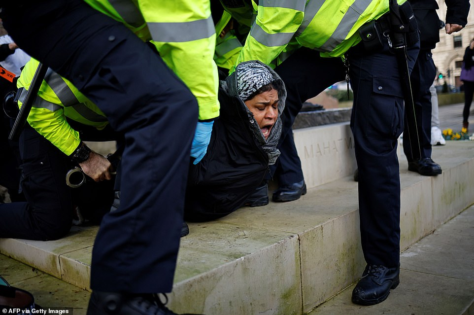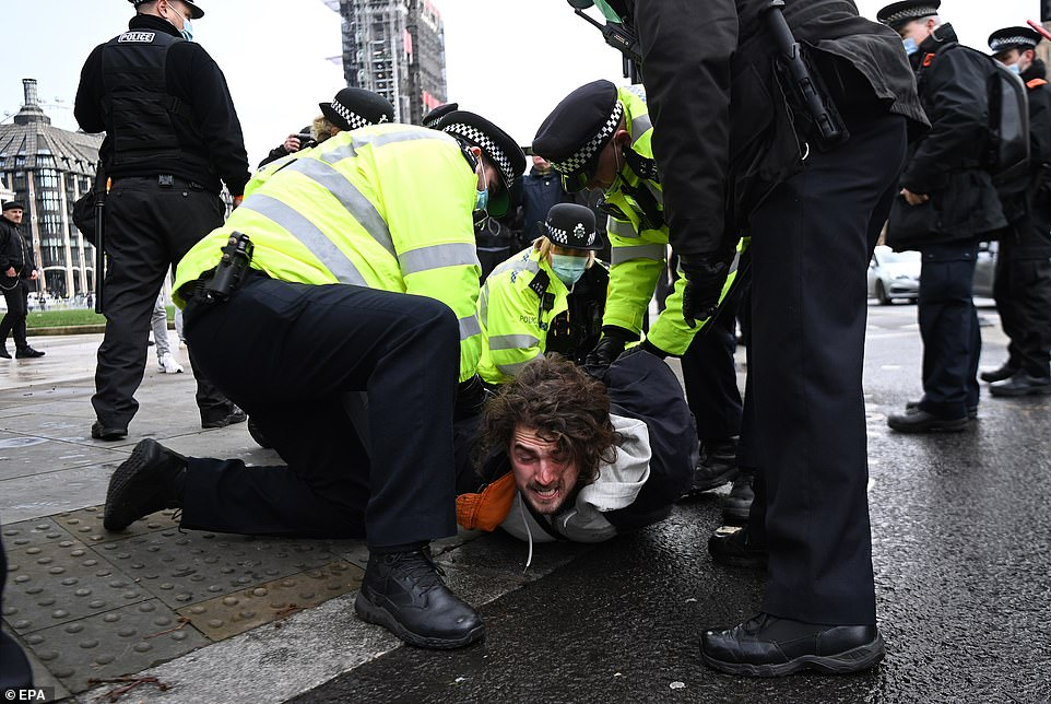 英國倫敦警察抓走反封鎖抗議者