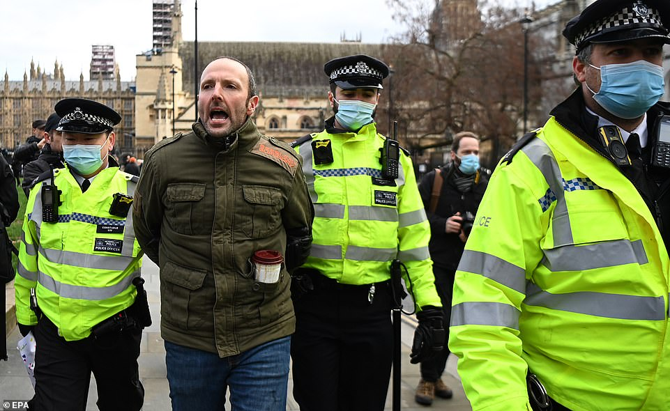 因壹起去麥當勞的肆人而被罰款,警察在倫敦抗議活動中阻止CARS進行測驗,並掩蓋警察逮捕了28名違反了“封鎖令”的活動家