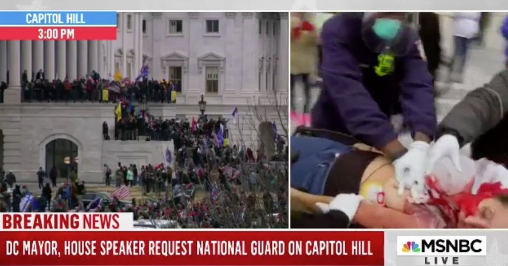 綜合美國有線電視新聞網,福克斯新聞社和MSNBC的記者稱,在數百名特朗普(专题)總統的支持者沖進大樓並與警方對峙後,下午叁點左右壹名女子在國會大廈內被槍射中。