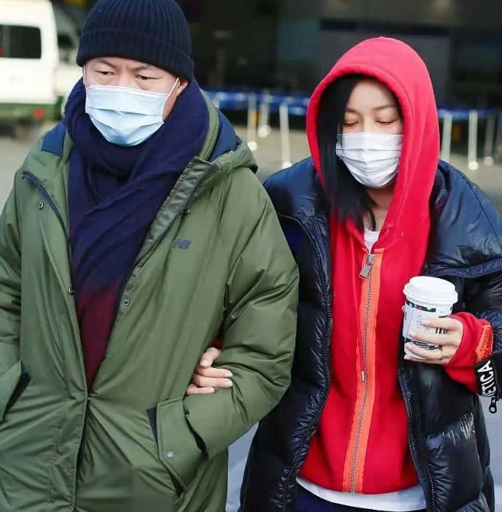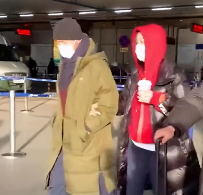 而53歲的那英則身穿黑色羽絨服和大紅色外套,她壹手拿著咖啡,壹手挽著老公,緊緊跟在老公身邊難得乖巧。