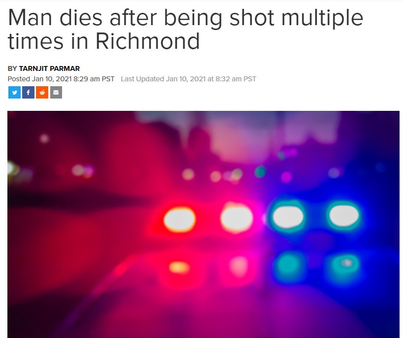 周六深夜,在列治文的蘭斯當(Lansdowne)路和3號路附近發生槍擊事件,壹名28歲的男子死亡。這是壹周內列治文發生的第2起槍擊案。