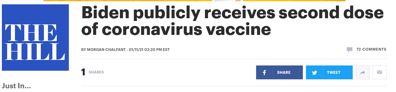 《國會山報》報道稱,戴著黑色口罩的拜登在接種第贰劑疫苗後對記者說,“我的首要任務是讓人們盡快接種疫苗,就像我今天所做的那樣。”