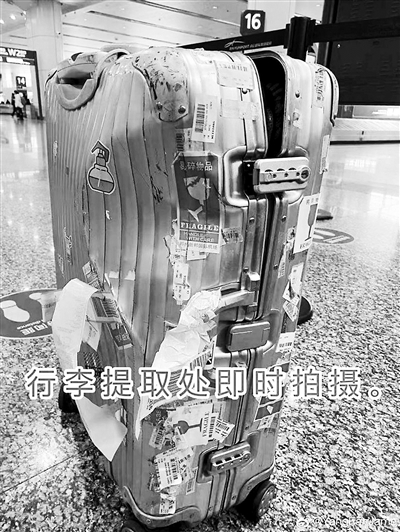 近日,微博网名YangFanJame发文称,去年12月22日他的朋友从北京乘坐海南航空HU7807飞往广州,到达广州提取行李时发现日默瓦行李箱被砸瘪,已到全箱开裂无法关合、箱内物品掉出隐私暴露的程度。他的朋友在机场投诉等待三小时未果后选择先行回酒店。