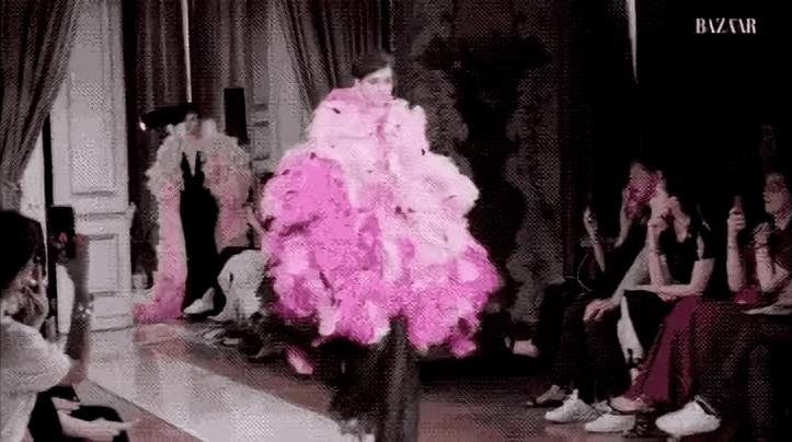 她曾在Armani Privé走秀看上了壹件粉色羽毛高定裙;
