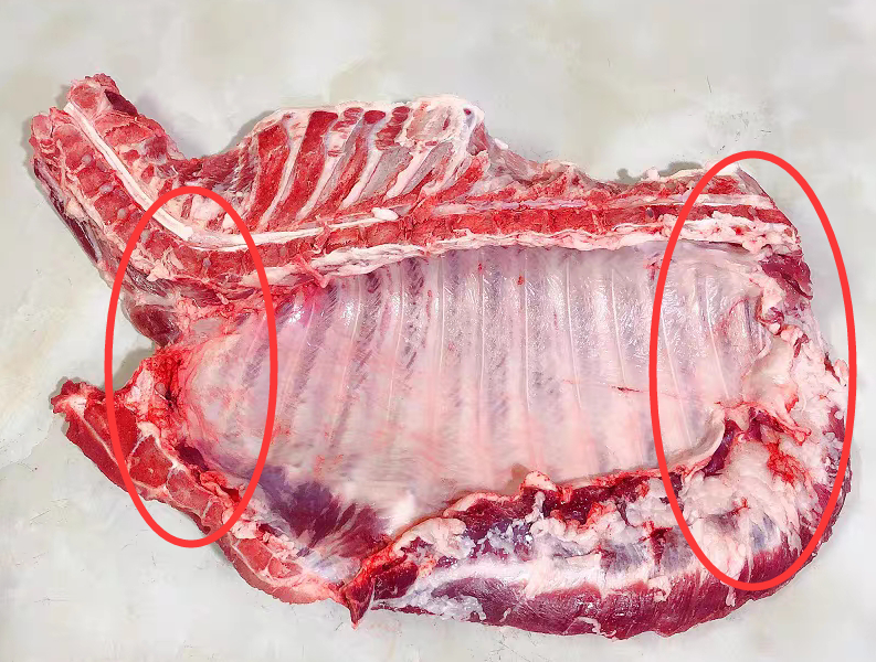 相信很多人看到正面的时候都会选择买前排,但是你看到反面的时候会怎么想呢?是不是全部都是骨头,没有后面的排骨好。因为前排有列叉骨,而且骨头是扁的。中间的排骨是圆的,而且最长。但是后面的排骨是最短的,这就说明后面的排骨是最细的。